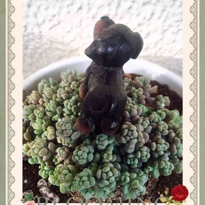 パープルヘイズに可愛い花が咲いてる💕 100均のウサギの鉢だけど、パープルヘイズがとてもぴったりでしょ😆