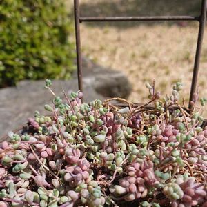 風が強く蒸し暑いです。 リシマキアのライムグリーンが少しだけ涼しく感じました🌱 ミニ缶のパープルヘイズは溶け気味💦 グリーンネックレスは葉焼けしながらも、どんどん伸びてきました🤗