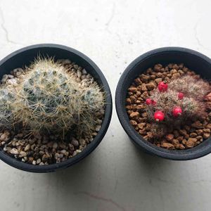 (多分)長盛丸。 5月にご近所さんからいただいたサボテン。 下がいただいた5月。 上が現在のお姿。 いただいた時に気づいたが成長点がダメになっているようだった。 だから、たくさん小吹きしているのかなと思っている。 子ども達もなかなかのサイズになってきている。 この間一つポロッと取れたから同じ鉢に植えた。 来年も綺麗な花を咲かせて欲しい。