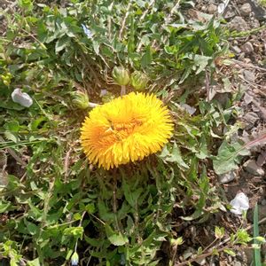 西洋タンポポと出会いました🤗 写真なので分かり辛いですがとても大きいなタンポポでした😲 良く見ると二つのお花が一つに合わさった感じが…🤔 ※どうやら帯化(たいか)と言う現象のようです。 あおいさんの『🏷心にメローイエロー』に参加させて頂きます🥰
