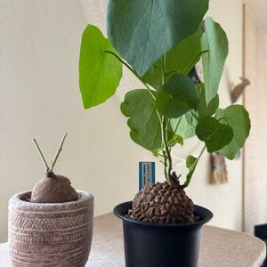 葉っぱがモリモリの亀甲竜🌿葉っぱは可愛いし塊根のゴツゴツがたまらん🤤葉っぱが1枚になったステファニア休眠するのかな🙂