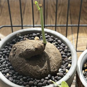 今朝は曇ってますが、昼過ぎまでは晴れ予報⛅️ 予想最高気温24℃ 葉が枯れきる前に今期のスベローサの最終地点記録🪴 夏場、強風雨が訪れた時にポッキリと茎が折れてしまいましたがここまで持ち直してくれました🌿 ゴツゴツなイモから可愛らしい葉を出していて、見ると癒されます😊