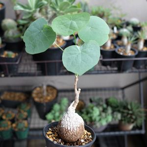ステファニア・スベローサ 今年は少し遮光気味で育ててます つるがまっすぐ伸びて、葉も綺麗に展開して良い感じです 塊根部の形が、以前は指で摘んだような形でしたが、結構丸くなってきました