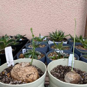 芋?岩みたいな塊根が届きました😁 とりあえず植えてみたけどこれでいいのかな🤔 ちゃんと根が生えて葉が出てくるまで、この方たちにしっかり見守ってもらおうと思います😎