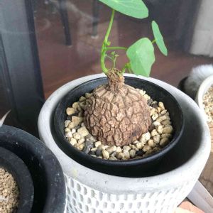 葉っぱたち ↗️ステファニア スベローサ ↘️ボンバックス エリプチカム ↙️ステファニア ピエレイ ↖️フィカス アブチリフォリア 梅雨で良かったこと、塊根達の根っこがめっちゃ動きだしたこと👀 新しい葉が出たり、これから大きくなる葉達がかわいいです☺️