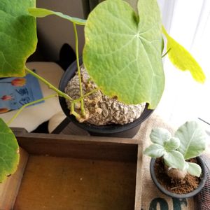 丸坊主姿がさみしいので真冬も野外(ビニールシートで風よけはしてました)で冬越ししたせいか遅めのお目覚めでした💦 でもやっぱりステファニアの葉は美しい❤️ 葉っぱ萌えです🤣❤️