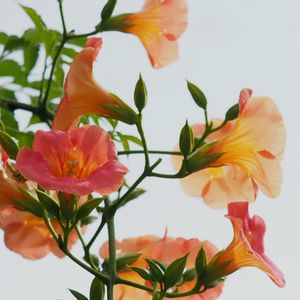 今日の花 「ノウゼンカツラ」 先週薄雲の日に 西からの日差しを浴びたノウゼンカツラ