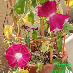 📷撮るタイミングが悪いのか… ベタァ〜❓っとなっているアサガオ😵💫 アパートベランダにて 2021年8月30日🌄撮影