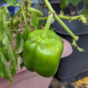 プランターで育てているみたい‼️ 此方のピーマンは 食べられるのだろうか❓ 歩道沿いのプランター 2021年8月31日撮影