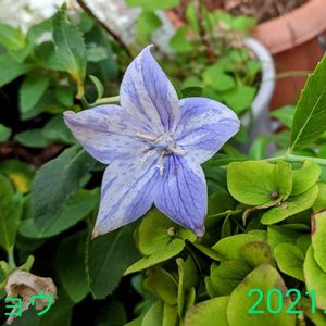 朝の巡回の時 班入りキキョウが咲いていました。 窓側バルコニーにて 2021年9月1日撮影