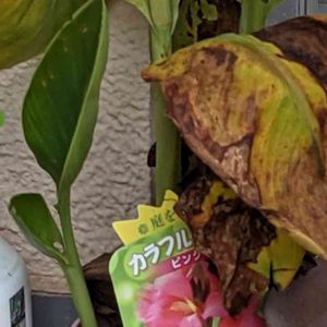 カンナ 花が咲き終わり、 横から小さな葉っぱ🍀が育って来ましたよ‼️