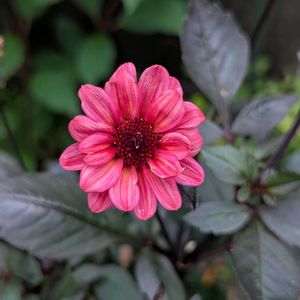 秋色できゃわわ🩷🩷🩷 銅葉とのコントラストも素敵な プチダリアです🤗 家族からは「腐った色」と 言われてしまいましたが…😅 この美しさが理解できない父(80)です⤵️