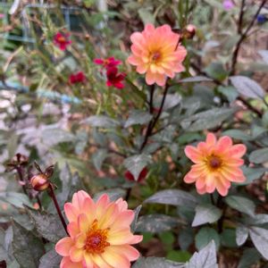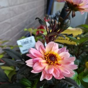 🌱プチダリア ハミングブロンズ 銅葉色の葉っぱが綺麗ですよ✨ やさしい色のお花もかわいい😊