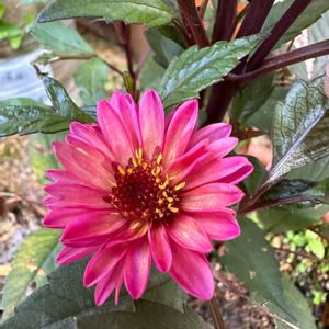 ❁. 。ダリア'ハミングブロンズ トレゾラ'。.❁ コンパクトな銅葉タイプのダリア🌸 小輪のダリアで 大きなダリアとは違った華やかさがあります💐 シックな銅葉と明るいピンクの コントラストが美しいですよね💕 株が綺麗に纏まるので、 寄せ植えなどにおすすめです◌̥*⃝ *育て方* 日当たり、水はけの良い場所を好みます☀️ 水やりは土の表面が乾いたらあげてください。