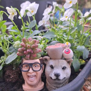1枚目 🏷オケツの日 ミールンちゃんに頂いたオケツ鉢に かっきーちゃんからの修羅道✨ 2枚目 🏷一日遅れてめんごめんご 🏷フクロウ祭 KOHちゃんのジジババピータン鉢に 無人販売のお客様から頂いた【かもめ】𓂃ོ✨ フクロータンpick添え 3枚目 ふうちゃんの鬼太郎ちゃんちゃんこ🥫に ビカラー💚 相変わらずイケメン✨ KOHちゃんからの砂オヤジ添え(笑) 4枚目 🏷うんこ 🤣 ちょっと秋色秋柄?になったアイビーと かえる♡ちゃんのお気に入り🩷🥫に 斑入りハートカズラ🩷🩶 5枚目 リアル鯉人?💥🤣 孫とお出かけ先で出会いましたꉂ🤣𐤔𐤔