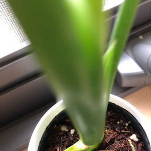 購入からだいたい1か月経過。真ん中からくるくるの葉っぱ♡早く開かないかな~🎶