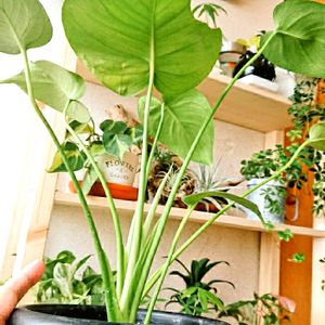こんばんはー(* ̄∇ ̄)ノ 去年の夏に買ったモンステラ😸 大きくなって木根ばかりボコボコ出るけどいつになったら葉っぱに切れ目が入るのかな~ 本当にモンステラなんだろうか?ρ(・・、)