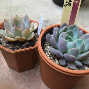 ■Echeveria (奥)イードンスノー (手前)白雪姫 昨年末、お連れ 先々週植え替え 先週水やり 今週養生中 いよいよシーズンです🙌