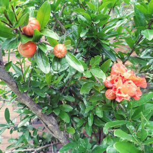 散歩道での出会い ザクロの花が終わり これから美しい果実に💞