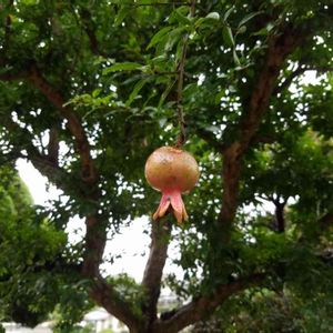 今日は、☔大雨です。 こんな日は、確かにぶら下がっている 柘榴がてるてる坊主に見えてきました。 雨やんで~~(-人-)