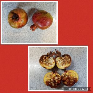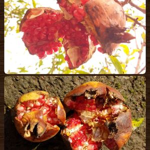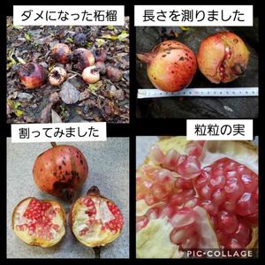 我が家の柘榴(ザクロ)♡♥ やっと食べられる😅💦 左上の写真のように実がなっていても、風で落ちたりして 食べられる物が少ない。何とか赤くなるまで落ちない様に(-人-)願って毎日眺めていたのです。そして木になっているうちにパカッと開いたものともう直ぐ割れそうと思ったのを2つ 採りました🎶 味がしました。実を口に含んで汁を吸ったら ( ゚д゚)、ペッペッ と 美味しいです♡♥ やっとここまで辿り着いたので余計に美味しく感じました(笑) 浮腫にも良いとか?こんな少しの量じゃ無理かな?(笑)