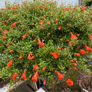 ご近所の住人不在の空き家の庭🥲 住んでた方が植物好きだったと思わせる四季とりどりの花や実が楽しめる庭😔 今は柘榴の赤いお花が満開です💕 主人さんはどうされちゃったのかなぁ🥺