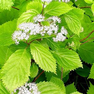 イワガラミ アジサイの装飾花は花弁でなく萼片と言われるが、イワガラミのそれは花弁というより1枚の白い葉が付いているようにも見える 白い水曜日♡🏷 両性花の花弁は開花すると落ちてしまって、雄しべがもじゃもじゃだ♬ 幹に絡みついて登っていくものにはツルアジサイがあるけれど先が棘のようになっている鋸歯はもう少し細かいようだ🟩