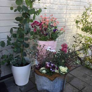 玄関前にある鉢植えを集合させました💕