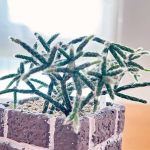 小さな、面白い子を見付けて 春に迎えてました リプサリス ピロカルパ 🌵サボテン科リプサリス属 よく調べないでお外に置いといたら 色が悪くなってしまい 慌てて室内に😣💦 なんとかキレイなミドリンに戻ったみたい😅 プリッツよりも細いんですよ〜😳 なかなかピントが合わず、ピンぼけです😅 アップで見ると、サボテンの仲間って わかります🤭🌵