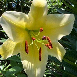 美しいユリが開花 庭の9種類目かと思いきや 隣のユリのきょうだいだった😆