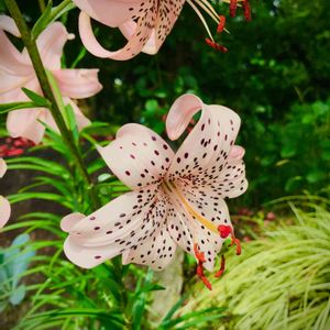 マンションの花壇の「カサブランカ」が咲きはじめました🌿💕 少しピンクがかった赤に白い斑があって綺麗ですね~🤗💕 🏷あっ火曜日 🏷真っ赤な火曜日 に参加させていただきます🙇