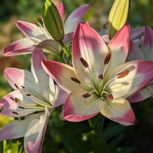 スカシユリが咲きました💕 朝日を浴びて嬉しそうです💕