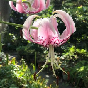 鹿の子百合さん 優しいピンク色のお花 かわいい 昨秋に球根に出会い小庭に植えました