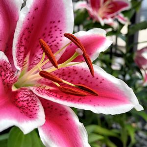 前の投稿の百合とは違って中央に点々が有ります。いい香りがしますよ😊 花びらの縁が白いわね💗