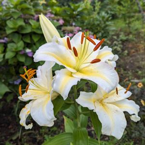 おはようございます☔️ 昨日に続き、今朝も、土砂降り中〜〜😣 庭に出れず、ガラス窓越しで、すみません。 雨☔️に耐え、開花を続けてくれています。 もう少ししたら、終わりだなぁ 今年は、一段と立派に咲いてくれて、ホントに有り難かったです。 スカシユリと、このユリで始まった、私のユリ育て、です。 カサブランカと思い、球根を購入して でも、カサブランカではないと知り、ガッカリしましたが、でも、小さな庭を、こんなに華やかにしてくれて、嬉しいです。 今年も、ありがとうの、オリエンタルリリーです。 黄色味を帯びて、日曜の朝に… 🏷️日曜ビタミンカラー♪ 🙇♀️ 詳しくは、 『コンカドール』 と言うそうです。 むらたぬき様、に、教えていただきました。 ありがとうございます💓💓💓💓💓