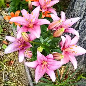 百合の花が咲きました🌸 下に写っている植物はサマーソルベットです 薄紫の細かい花が咲きます😃