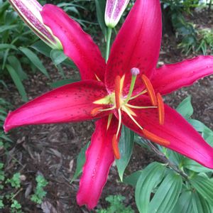 赤のカサブランカが咲いてました。 カサ・ブランカ=白い家?ホワイトハウス?とか連想してたから、白以外のカサブランカがあることを、数年前まで知らなかった💦 無知は恥ずかち〜(//∇//)