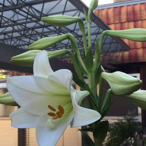 車庫の片隅に置いてあるユリが、いつの間にか咲いていました💖丈高2m、手前にカポックの大鉢があるから、水も満足に与えてなかったのに🙏本当に手が掛からなくて綺麗な花を咲かせてくれるイイ子のユリ子ちゃん❣️なのでした😊毎年切り花にしてお仏壇にお供えしています💕