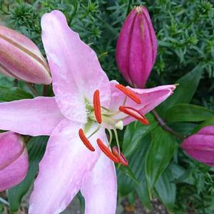 曇りのち雨のヨホー 鴨吉家地方。 外に出てたら ☂降ってきました。 こちら 巨大化した ユリ 2メートルはあろうかという程デカくなった 去年。 掘り上げて 株分けして 深く埋め直したの(*^^*) ユリ根も 赤ちゃんの頭くらいになってて ビックリ👀 通路側にあるから 雄しべ切っとかないとね(´-ω-`;)ゞ