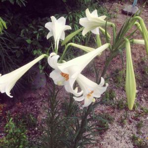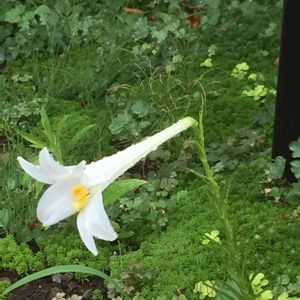 8月に玄関わきに自生したユリ。 何ユリだろう?テッポウユリじゃないよね?