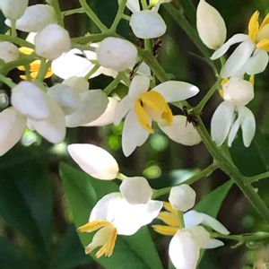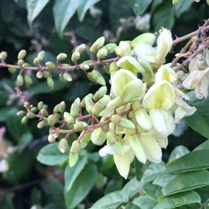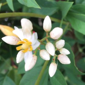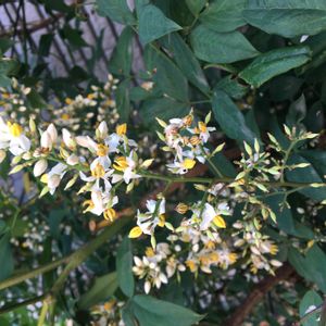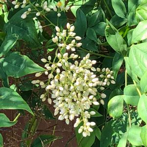 他所様の生垣からひょっこりお花。 白い萩でしょうか❓ 南天のお花でした😊 らりるん♪ ちゃん、ありがとう💕