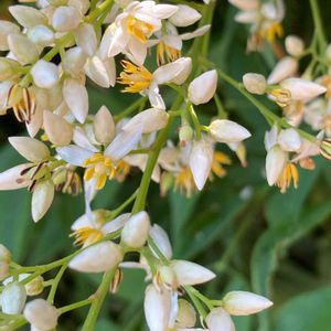 5月末、南天の花、開きだしました、この分だと今年の冬は赤い実は豊作か