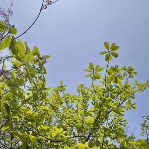 ホウノキ 空を見上げれば、若緑の美しい葉。 葉の廣がり方が個性的。 朴の木と。 白い、花は見えない。 これからかな。