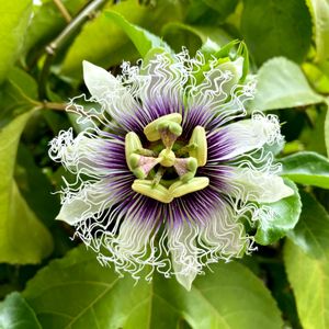 今日のお花【パッションフルーツ】 見れば見るほど、変わったお花ですねぇ〜🍀 今年も、収穫出来ます様に~💚💚💚💫 昨年のpicです✨🍀