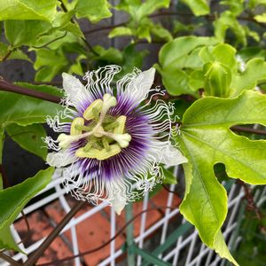今日のお花トケイソウの一種のパッションフルーツ🥭 今年のグリーンカーテンは例年より順調に成長中です🌿 まだつぼみがチラホラあるくらいな感じですが今年はたくさんのフルーツが実るのを期待してます😉