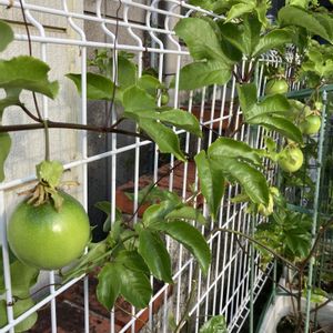 今年初めて実ったパッションフルーツの果実🥭 雨の日に咲いたお花だったのでうまく受粉できてないと思ってだけど実が大きくなりました✨