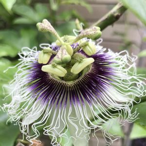 💠今日のお花💠 🧚♀️時計草🧚 昨年10/21に咲いた過去pic。 今年はテラスの仮温室から出したのが遅く、まだ花が咲いていません。パッションフルーツです。 鉢を大きくしすぎて、持ち上がらないし、場所がなくて困っています。もう少しコンパクトにしたいですね。 パッションフルーツはとても美味しいので、なんとか育てたいです💕交配は綿棒を使っています。 背が高すぎて脚立は怖い😅 マイガーデン💕 🏷木曜モフモフ に参加させていただきます💕
