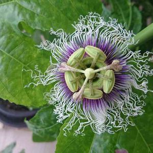 パッションフルーツの花が咲いていました。 初めて育てています。 全く期待していなくて、偶然見つけて凄く嬉しかった❣️ 多分、これが300pickになるのかな? 有難うございます。