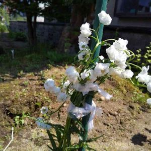 3年前ホームセンターで見つけたこの子。 青いお花が欲しくて即買いしました。 植える前に風🍃にやられ、茎がポキッ💦 キョエ〜😱どうしましょ?と一瞬悩んだけど、茎部分と根っこ部分を並べて植えてみました。 無事に根も付き、花を咲かせてくれてます🥰 こちらも茎が細いので、毎年支柱が欠かせません。 今年も咲いてくれてありがとう❣️