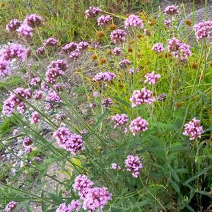 三尺バーベナ 勝手に花いっぱい運動エリア 三尺バーベナが可愛く咲いていますよ☺️ こぼれ種で年々数を増しています🥰 だんだんと、殺風景な空き地がメドウガーデン風に進化してます🤭